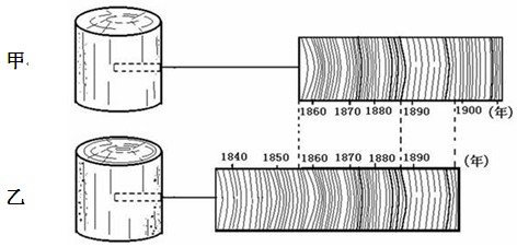 D.乙图中树木约在1900年前后停止生长
