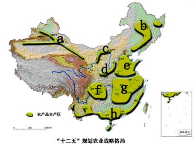 1、单选题 读“我国‘十二五’规划农业战略格局图?”,回答下列小题。