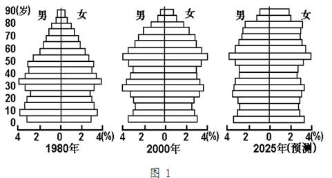 小题1:由人口金字塔的变化可以判断,塔基变窄,塔身、塔顶变宽,该国人口变化趋势的一个突出特征是老龄化趋势显著。正确答案选B。