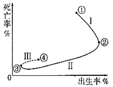 2、单选题 2014年2月10日,国家卫计委宣布上海、江苏等9个省份已通过备案,成为第一批实施“单独两孩”政策的省份。下图是我国某省从建国初期至今后的人口自然增长轨迹示意图,其中Ⅲ阶段为预测段。回答下列小题。