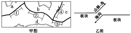 1、甲图中①~④段板块界线中,与其它三段板块界线类型不同的是