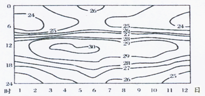 4、单选题 下图为“某地某月一段时间气温日变化的分布图”,读图回答下列各题。
