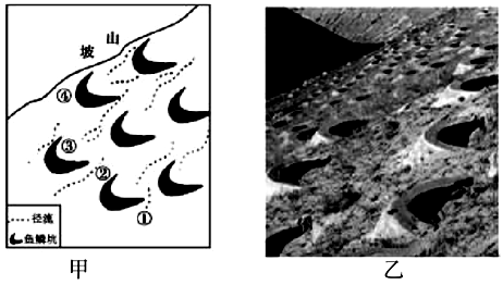 5、单选题 鱼鳞坑是为减少水土流失,在山坡上挖掘的交错排列、类似鱼鳞状的半圆形或月牙形土坑,它能够拦截地面径流,起到保持水土的作用。读下面两幅图完成下列各题。