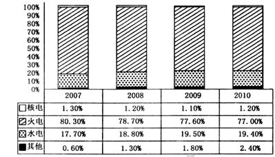 2、单选题  清洁能源是指不排放污染物的能源。图2为2007-2010年中国电力各细分行业发电量占比图表。据此回答3-4题。