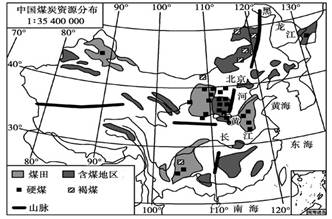 4、综合题 煤炭是我国最主要的一次能源,占我国一次能源消费总量的70%以上,随着我国经济的持续快速增长,对煤炭的需求也将保持快速增长。读该图,回答下列问题。