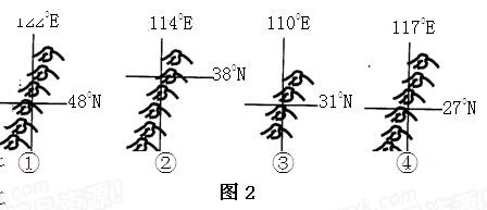 小题2:关于图中四条山脉两侧地理事物特点的叙述,正确的是?