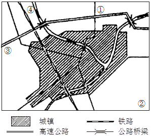 小题1:该城市计划在①②③④处空白地上新建一些工厂,从经济效益、环境效益和社会效益方面考虑,其中布局合理的是