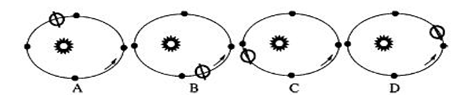 4、单选题 2010年10月1日18时59分57秒,中国探月卫星“嫦娥二号”在西昌点火升空,从此 “嫦娥二号”开始了112小时的奔月之旅,预计在4天后到达月球,“嫦娥二号”发射时,地球处在公转轨道上的位置图示正确的是