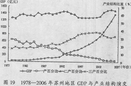 (2)读图,说出1978 - 2006年苏州地区GDP与产业结构的变化特点。