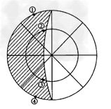 4、单选题 2004年3月22日到4月3日期间,可以看到多年一遇的。其中水星是最难一见的行星,观察者每天只有在日落之后的1小时内才可能看到它。在下图中阴影部分表示黑夜,中心点为极地。回答1-2题。