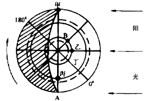 2、综合题 读太阳光照图,回答问题。