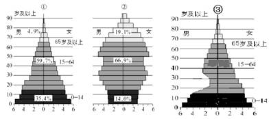 点评:本题难度适中。以三个国家人口金字塔图为材料,考查不同类型国家面临的人口问题。