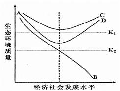 2、单选题 下图表示生态城市建设面临的三条道路。K1表示生态环境质量安全警戒线,K2表示生态环境质量开始恶化的临界线。据此回答小题。