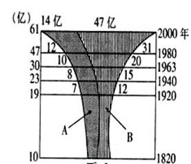 4、单选题 图为“世界不同生产力水平国家人口增长图”,读图回答题。
