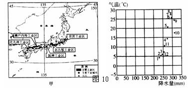 材料一:甲图为“亚洲部分地区图”,乙图为“北九州气温与降水统计图”。