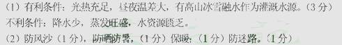 (1)评价吐鲁番盆地绿洲农业发展的自然条件。(6分)