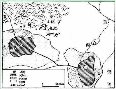 小题2:乙地现有水源(包括从B河引水)不能满足其今后发展的需要,试列举可能的应对措施。