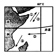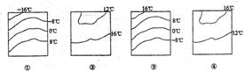 5、单选题  下图中①—④箭头表示洋流的流向。读图回答下题。