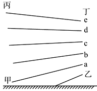 若a、b、c、d、e为不同温度值,按对流层温度分布规律,随高度增加而递减,a>b>c>d>e,再根据等温线的分布,乙为热源,气流上升,近地面形成低压,甲为冷源,气流下沉,近地面形成高压,在垂直方向上近地面气压高于高空气压,则气压值由大到小是甲>乙>丁>丙,所以本题C正确。
