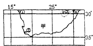 (3)图中①海域经过的洋流流向应为向 (南或北)流,属于 (寒或暖)流,简述此洋流对地理环境和人类活动的影响。(4分)