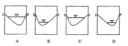 (2)2010年7月,某水文研究所在R河下游沿EF线作河流剖面图,所作剖面图与下图最接近的是(2分)