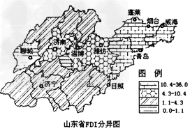 1.从图中可以看出,FDI在山东省的分布特点是