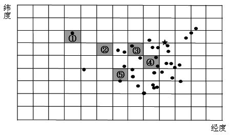 1、单选题 下图是经纬网图层和中国省级行政中心图层的叠加图,图中经纬线间隔度数相等。读图,回答第1~4题。