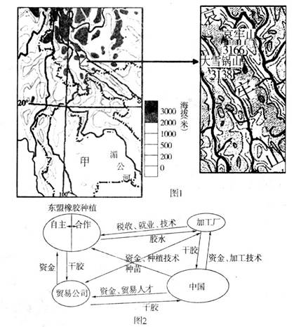 (1)图1中甲国为世界最大的天然橡胶生产国和出口国,分析该国橡胶林种植的有利自然条件。(6分)?