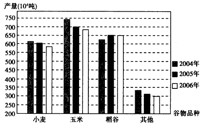 1、单选题 下图是2004~2006年世界各种谷物的产量变化图。读图回答1~2题。