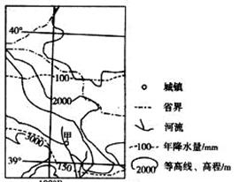 5、单选题 “葡萄美酒夜光杯,欲饮琵琶马上催”。唐代诗人王翰的《凉州词》是对我国河西走廊地区葡萄酒盛誉的浓缩。下图为河西走廊某地区等值线示意图。完成下列问题。