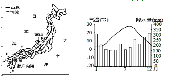 1、单选题 读日本山河分布示意图及富山市气温和降水季节分布示意图,读图完成13—14题。