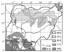 (1)比较尼日利亚南北农作物的差异并简要说明其原因(8分)