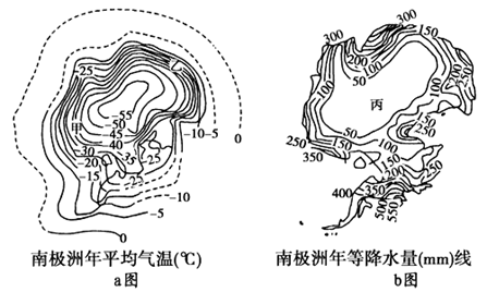 1、单选题 下图是南极洲年平均气温图和年等降水量图。读图回答下列各题。