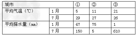 5、单选题 下表是三个城市的气候资料,据此回答: