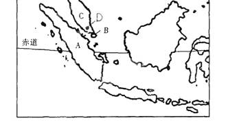 (5)B地是 (国家),其附近有 海峡,该国支柱产业有石油化工、造船等。
