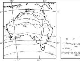 5、单选题 下图示意世界某区域2月份平均气压分布和年降水量分布(图中资料均为多年平均值)。读图完成: