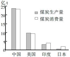 1、单选题 下图示意2008年中国、美国、印度、日本四个国家的煤炭生产量和消费量。读图并根据所学知识,