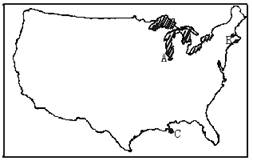 本题解析:本题主要考查学生关于美国的区域地理和城市区位因素的相关知识,以及有关城市区位因素的应用能力。第(1)问中美国东北部美加边境的五大湖区是世界最大的淡水湖群,有“北美地中海”之称。在其周围城市密集,如芝加哥、密尔沃基、底特律、布法罗、克里夫兰等,均由五大湖提供廉价的水运及城市用水,在此基础上,城市沿湖分布。因此以上城市的主要区位因素,应是湖泊以及地处平原等。第(2)问里B城应为波士顿,最早是建立在半岛上,目的是有利于安全防卫。后来随着海运业的兴起,波士顿又利用沿海港口的有利位置不断发展壮大。第(3)问中C城市为美国墨西哥湾沿岸的新奥尔良,也是美国最大的河流——密西西比河注入墨西哥湾的地方,因此该城市的主要区位因素是河口位置,利用河海联运、腹地广阔的有利条件,成为美国南部著名的城市。在解答这些问题时,不仅要具备城市发展的相关知识,还要熟悉美国的地名,并且做到心中有图。