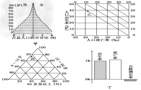 5、单选题 读甲、乙、丙、丁四地的近年人口统计图(如下图),回答1—2题。
