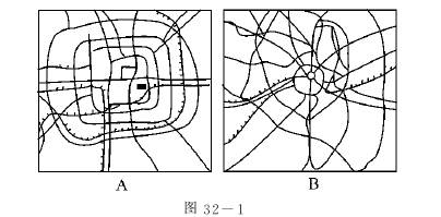 4、综合题 图32-1中A、B两图分别为北京、莫斯科城市交通示意图,读图回答下列问题。