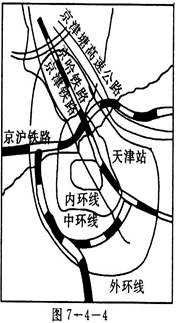 (3)天津市的交通网布局特点是 ;该城市有三条环行公路,?它们是 、?和 ,?它们与市区的放射干道相连,目的是;① ;② 。