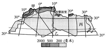 3、单选题 读世界某区域年降水量分布图,回答问题