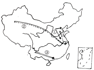 (1)②线有西北新疆地区输往长三角地区,是西气东输,③从珠江上游输往珠三角地区,是西电东送的南线,④从长江流域输往华北地区,是南水北调。