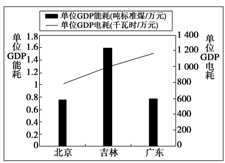 小题1:广东的人口比北京多.故广东的人均单位GDP电耗低于北京;