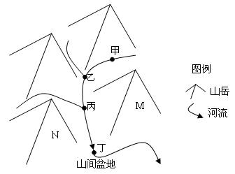 1.一般而言,下列关于甲乙丙丁四河段叙述正确的是2.2009年8月9日因受强热带风暴影响,该河发生了大洪水,洪水退去后,某人沿河勘查发现3.关于该地水体参与的水循环状况叙述正确的是4.2011年春,该地出现了旱情,为缓解今春的旱情,可采取的措施有5.M山相对高度为1500米,山脚海拔为100米,则6.N山原本树木茂密,后因坡地开垦、水土流失,到上世纪90年代由于土层过薄已无法耕种而抛荒,至今N山仍只是杂草丛生的荒山。N山的景观变化体现了