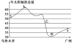 3、单选题 该图为“我国乌鲁木齐至广州一线年太阳辐射总量(单位:亿焦耳/平方米·年)剖面图”。读图回答