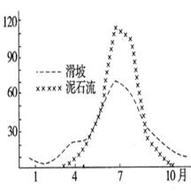 点评:本题难度一般,能抓住图示的滑坡、泥石流灾害发生的季节特征是解题的关键,并能结合影响滑坡、泥石流形成的主要原因和地质灾害的主要防治措施分析。