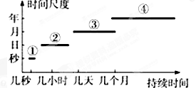1、单选题 如图表示几种自然灾害的持续时间,读图完成问题。