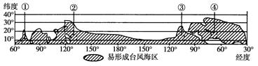 3、单选题 该图是北半球易形成台风海区分布示意图。读图,完成下面问题。