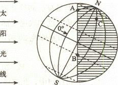 3、综合题 读地球光照图,回答下列问题。